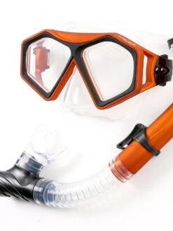 DiveSport Silicone Mask & Dry Top Snorkel 2pc Set (Orange / Clear)