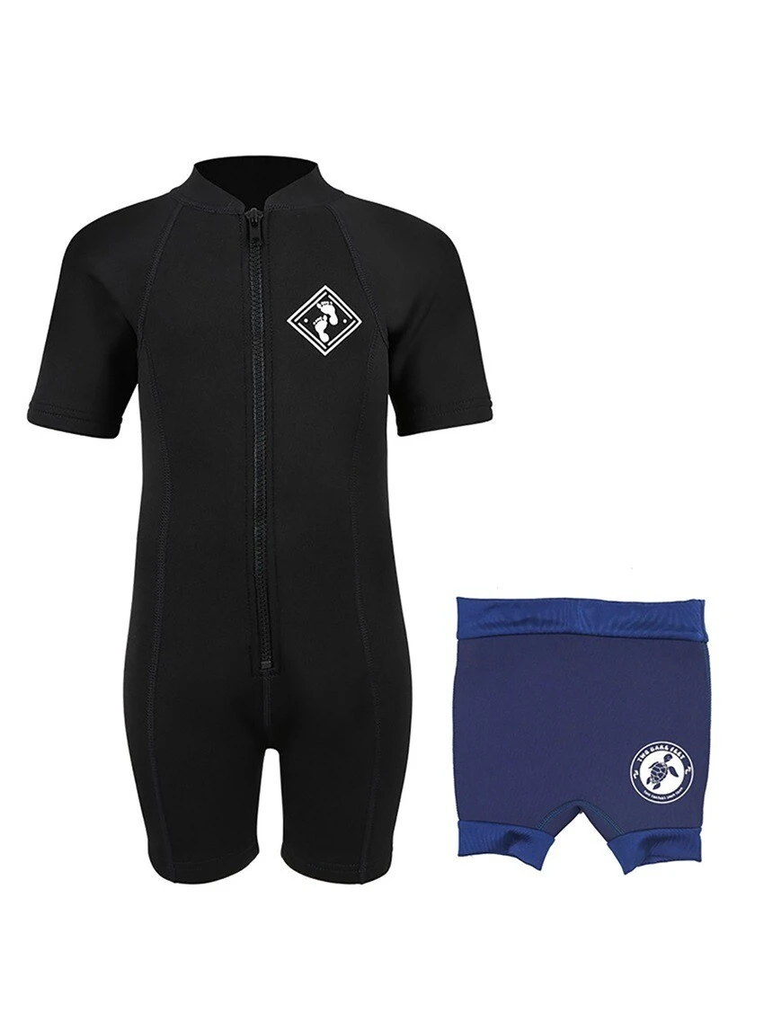 Made from a soft neoprene material (as used on wetsuits), this excellent value Baby Swim Suit is the perfect solution for swimming lessons or just to be worn on the beach. Make changing time simple and easy with the sturdy front zipper and once on you can be assured of great comfort with flat stitched seams.