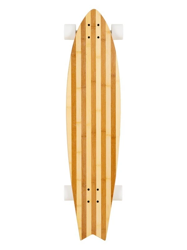 The Deacon is a mid range 40 inches long, 9.5 inches wide but has a shorter 28 inch wheel base so gives the swallow tail a longer over hang. Very, very, minimal flex offers the best response and feedback of our bamboo range and the similarly mild concave gives a smooth and surfy, carve feel to the ride that is easy to control. You’ll love the ease which this board cruises and will make you fall in love with its’ ride.
