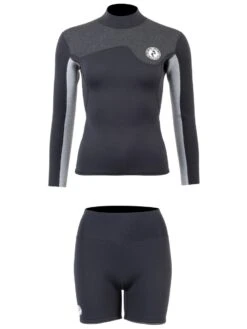 Two Bare Feet Womens Aspect Back Zip 2.5mm Wetsuit Jacket & Shorts Set (Black/Grey)